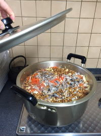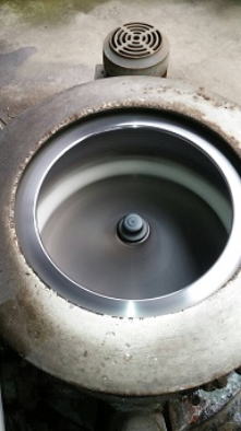 糸を紡ぐ前の、繭から”真綿”をつくる工程 繭の成分、”セリシン”(タンパク質)が溶け出し、ヌルツルっとした樽のお水。化粧品の成分としても注目されており、最も人に近いタンパク質成分といわれています。真綿かけをしていると手もスベスベ。