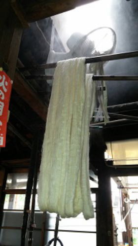横島さん独自の技で、堅さ・歪みを最終調整 その1反1反に合わせて、すべての湯通しの工程が進みます。 そして、結城紬の本領を発揮した1反が完成します。 結城紬は、決して、堅くてカサカサしたものではありません。 しなやかさ 軽やかさ 気品 絶品です。