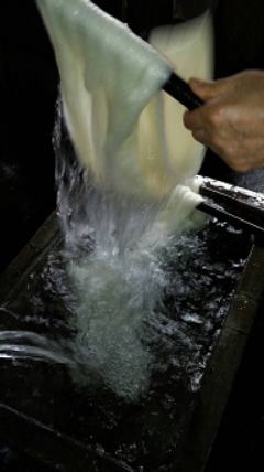 水分だけを素早く吸収する性質。 反物を板に張るため、糊を吹くと、ベトベトだけが表面に残ります。
