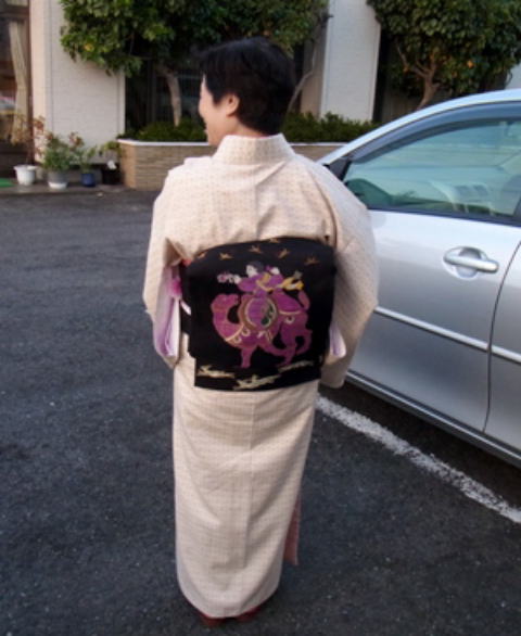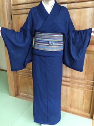 お着物は、藍とサフラン染め、帯は桜染めとのことです。色は無限美しい!