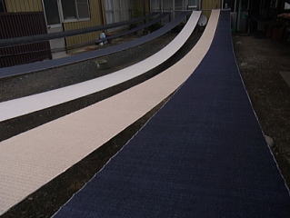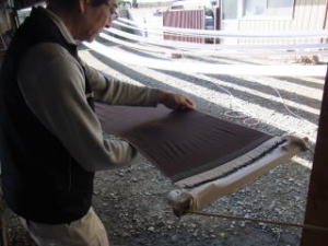 糊ぬきをして天日に張っているところ