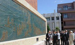 ブロンズレリーフは、市民に鑑賞してもらおうと100人委が市に寄贈。石こうレリーフの修復費を含め1500万円を目標に市民からの寄付を募り、今年6月から台座などを含め高さ3・2メートル、幅8メートルの作品の設置工事を進めてきた。